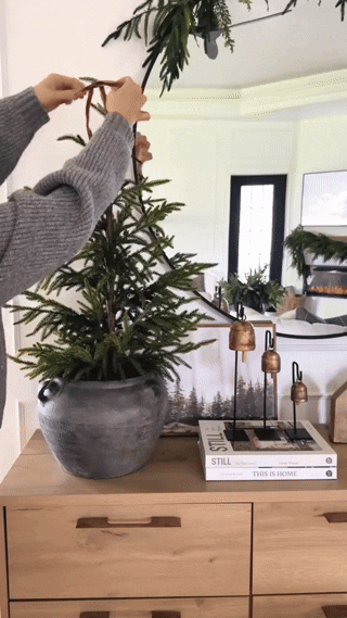 This Norfolk Tree is everything I’m obsessed.😍 I styled mine with pre-tied brown bows, for a warm, earthy feel!